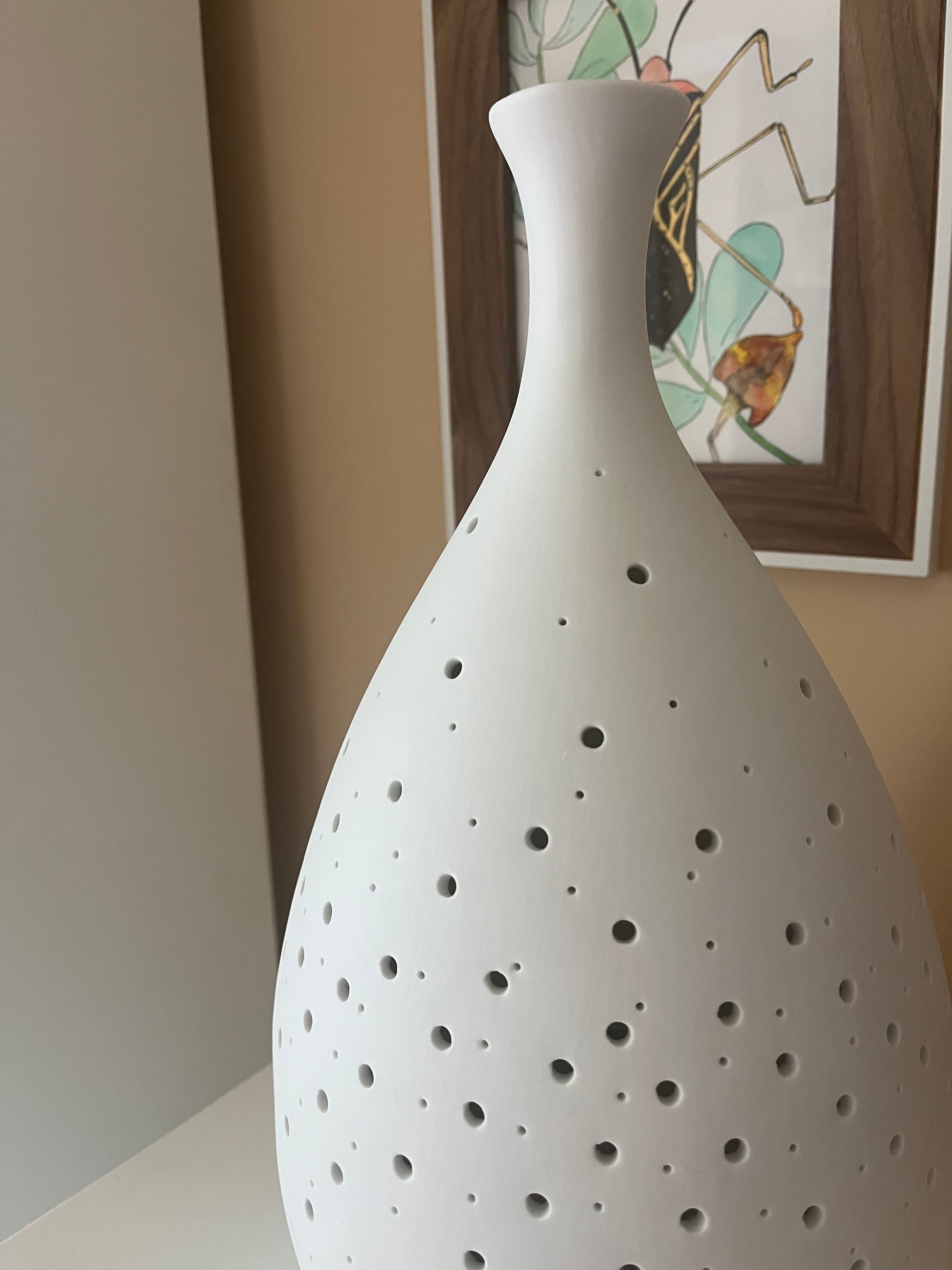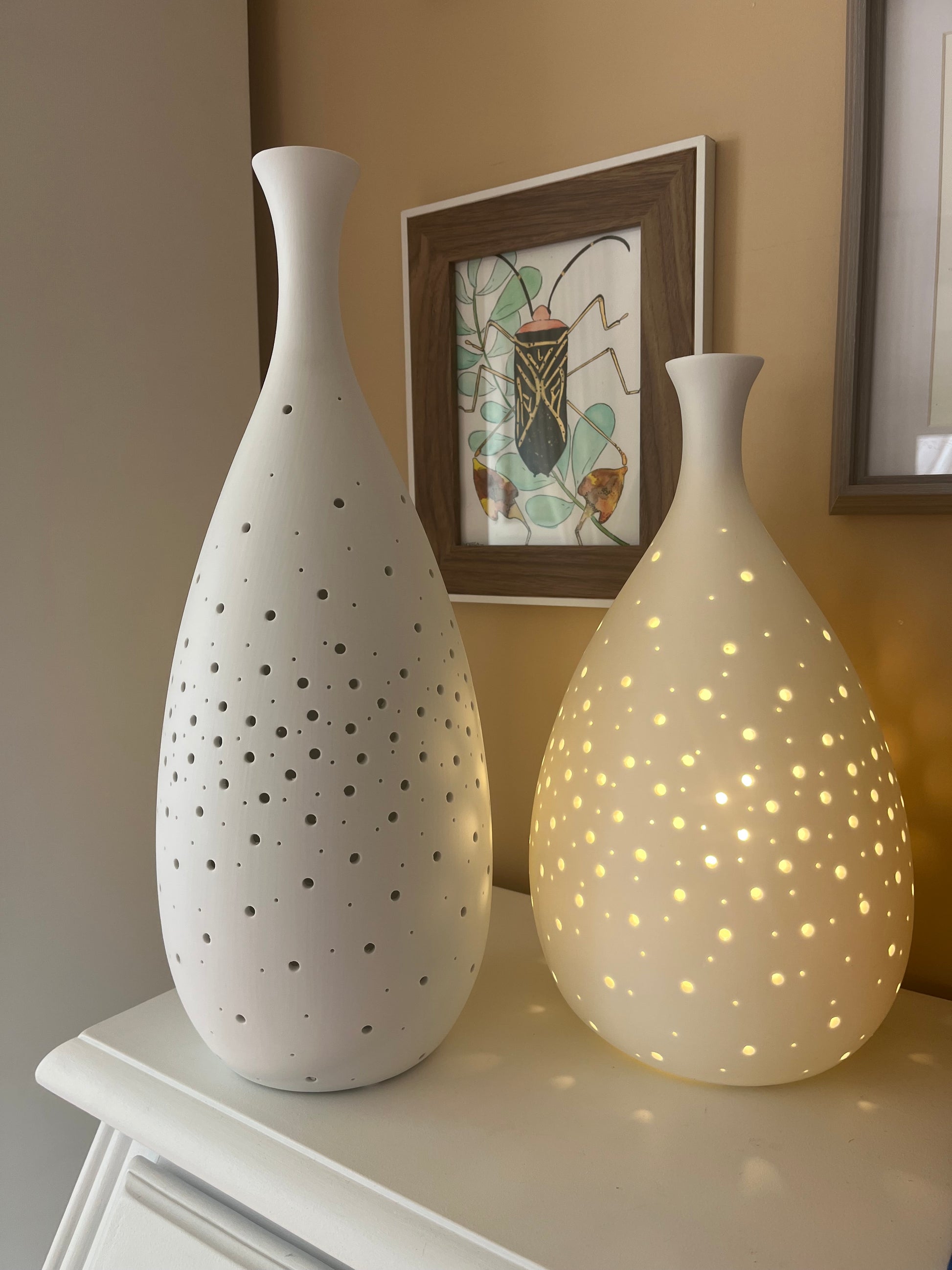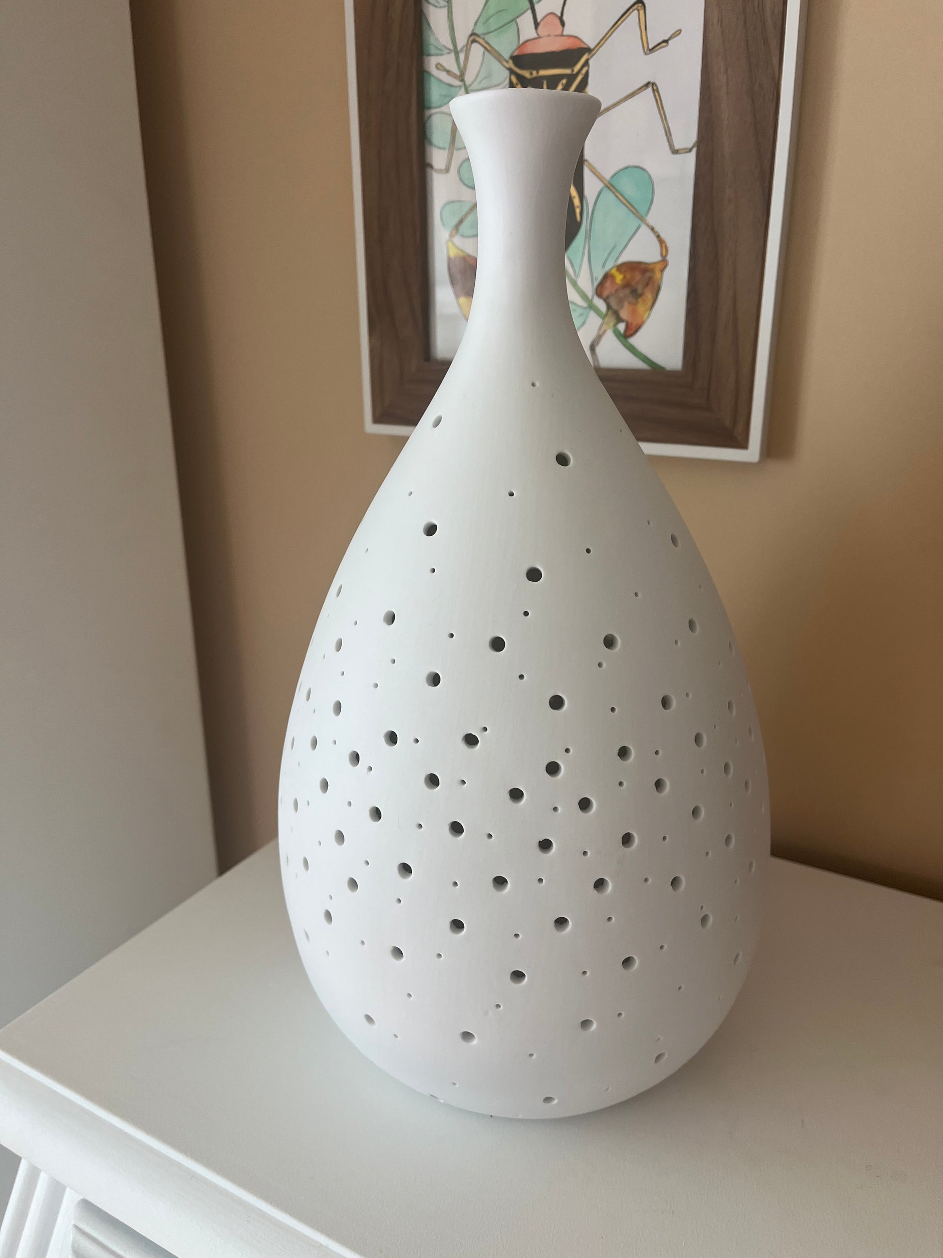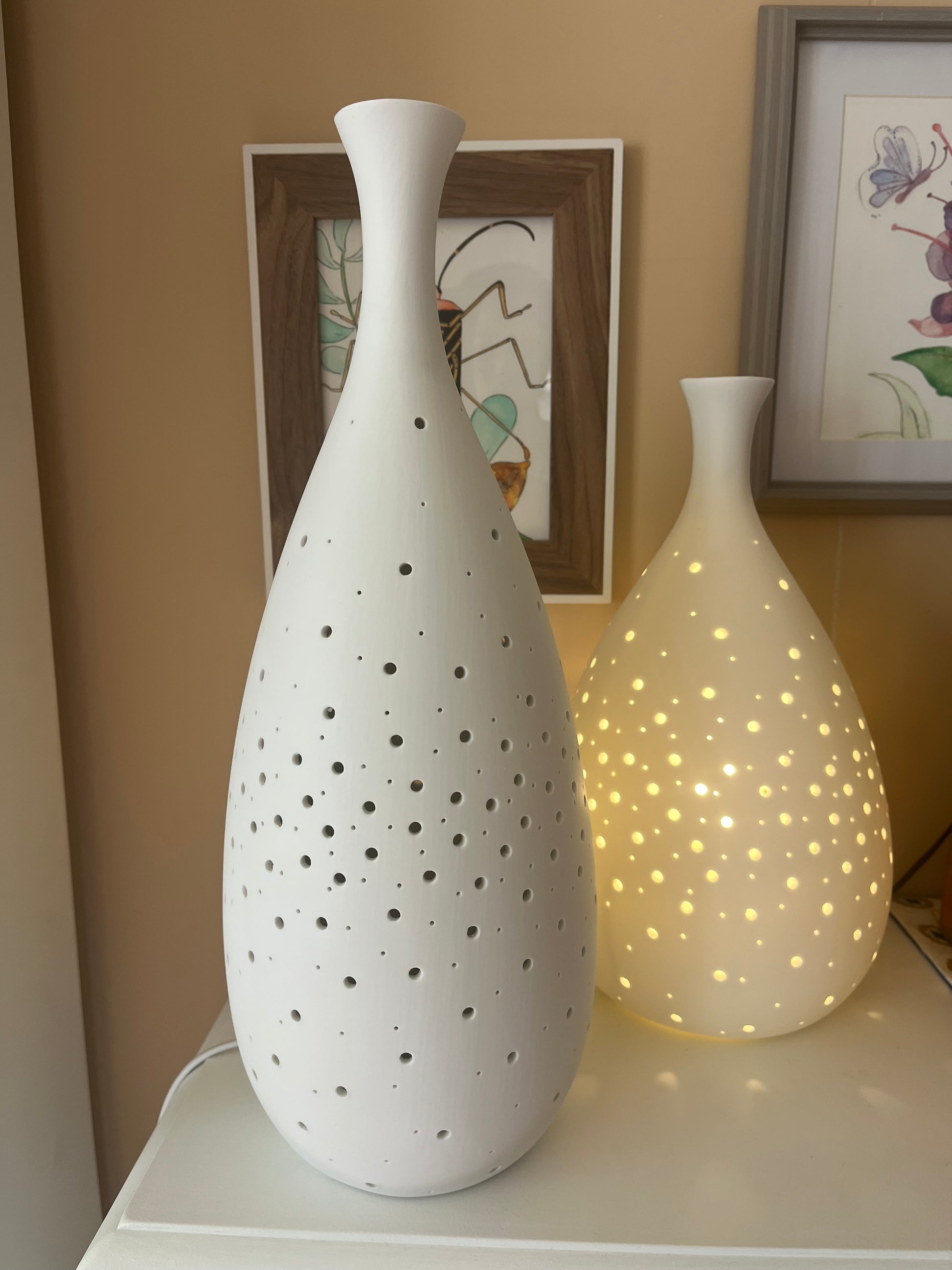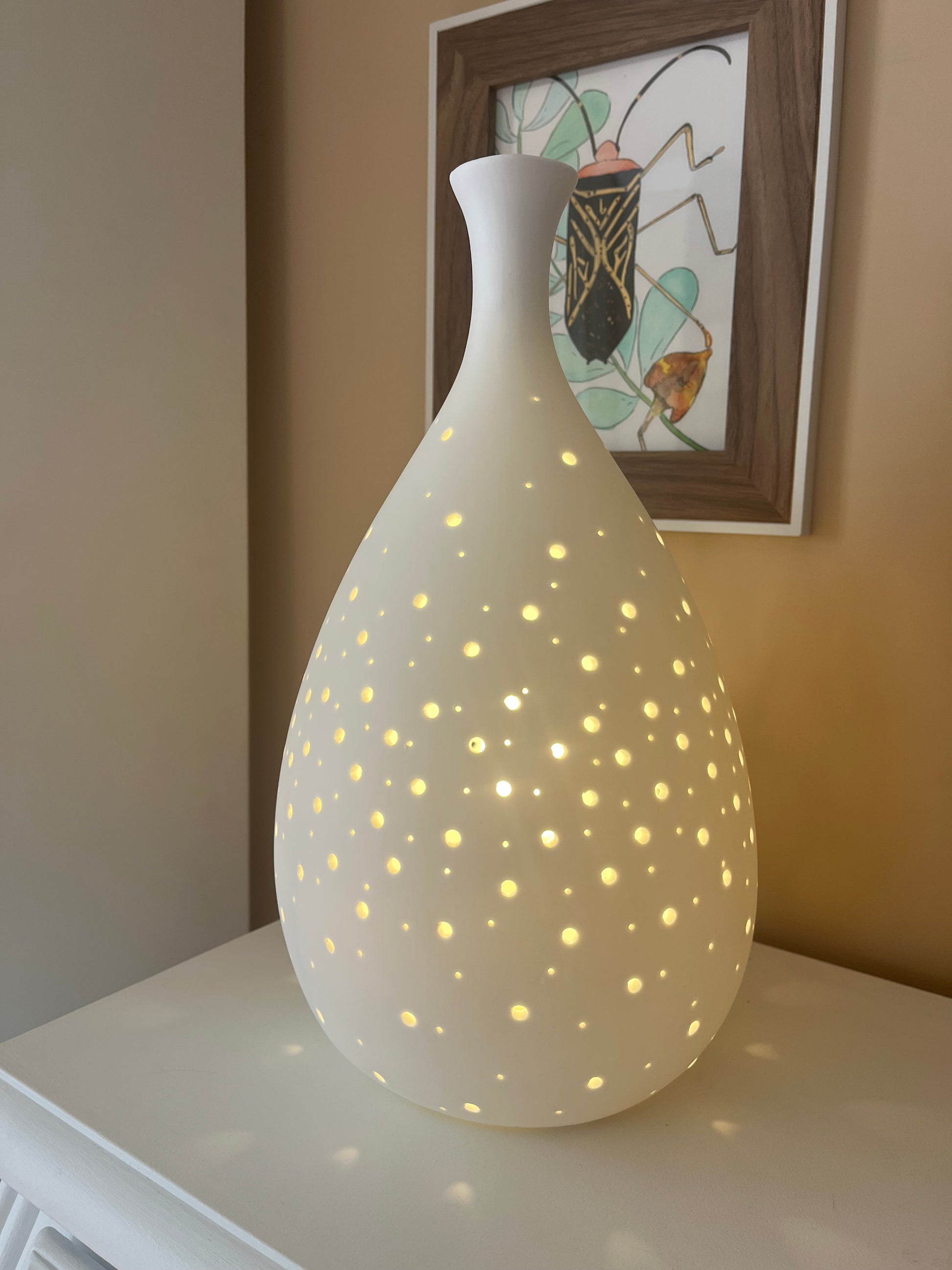 - Con una altura de 33,5 cm y un diámetro de 18,5 cm, se adapta perfectamente a cualquier mesita de noche.